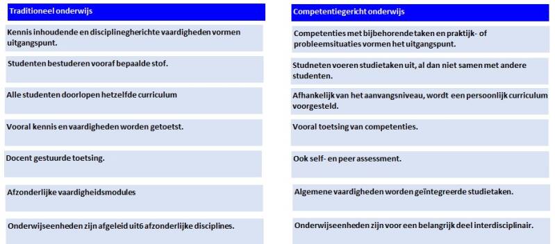 Verschillen tussen traditioneel onderwijs en competentiegericht onderwijs: