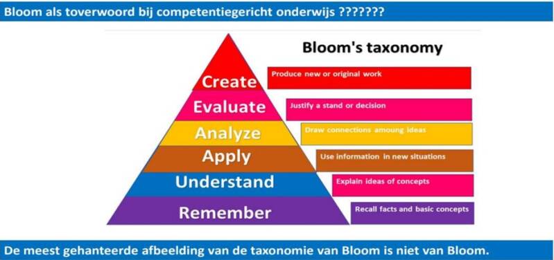 Bloom heeft er geen pyramide van gemaakt. Als je van komen tot een bepaald denkniveau een onderwijsdoel maken, ben je aardig de weg kwijt.
