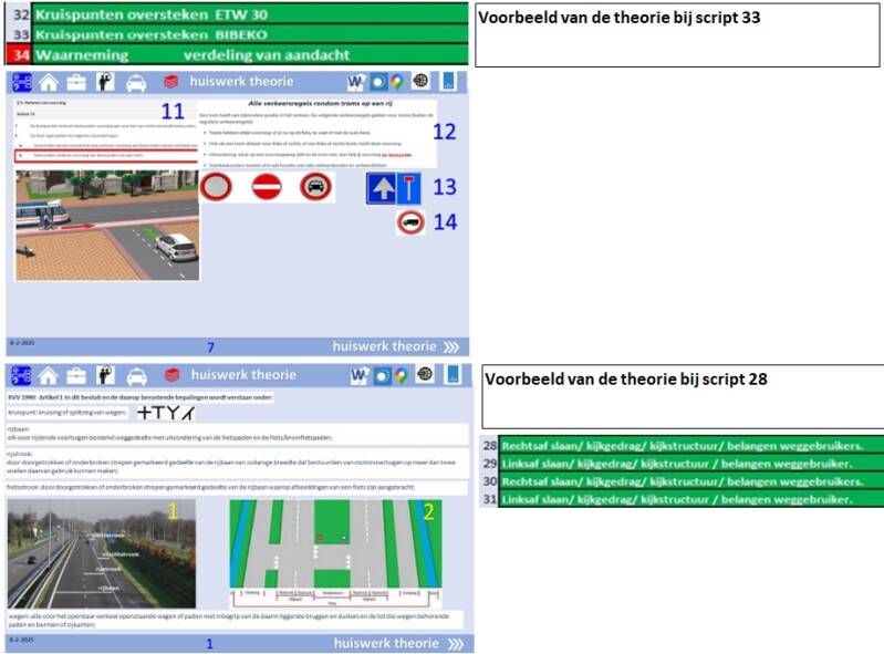 De consequentie van vakkenintegratie is dat de leerstof over WVW, RVV, Gevaarherkenning en Verkeersinzicht volledig opnieuw dient te worden gerangschikt naar de handelingsscripts. De handelingsscripts zijn ook nog eens locatie gebonden. Dit houdt in dat de leerling zijn/ haar huiswerk nog een keer beleeft in het gebied waar de praktijkles over gaat.