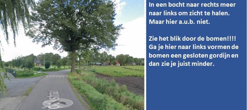 In de flauwe bocht naar rechts niet altijd links rijden om zicht te halen.