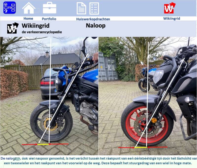 De naloop van de Suzuki SV 650 en van de Yamaha MT07 is ongeveer gelijk. Van de Suzuki ietsje groter en daarmee is deze motor ietsje minder wendbaar, maar dat wordt dik gecompenseerd door een perfecte zithouding mogelijk te maken voor Smurfin.